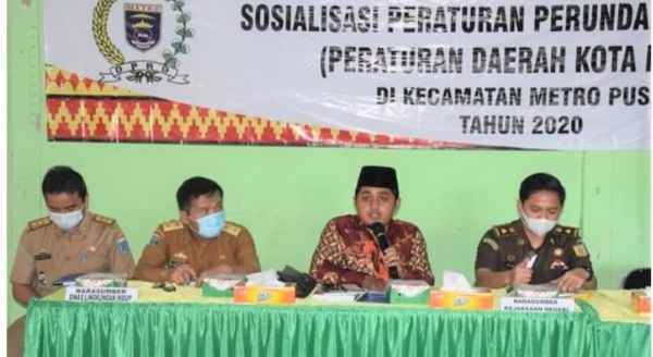 Kegiatan sosialisasi produk hukum tertinggi daerah tersebut yang diikuti oleh uspika dan masyarakat sekitar berlangsung di kecamatan Metro Pusat, Senin (2/11).