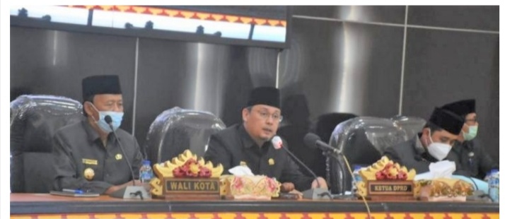 Metro Lampung,(radarnews.id)– Rapat Paripurna tingkat I tentang Pandangan umum Fraksi-fraksi atas penyampaian 5 Raperda dan jawaban Walikota Metro atas pandangan umum fraksi-fraksi, di laksanakan oleh DPRD Kota Metro di Ruang Sidang setempat, Selasa (14/10/2020).