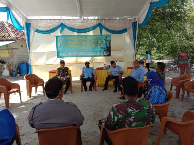 Lampung Timur, (radarnews.id)-Kegiatan yang dilaksanakan dalam rangka pemulihan ekonomi Nasional 2020 di obyek wisata mangrove pandan alas ini berlangsung di Desa Sriminosari, Kecamatan Labuhan Maringgai, Kabupaten Lampung Timur, Kamis (17/12).