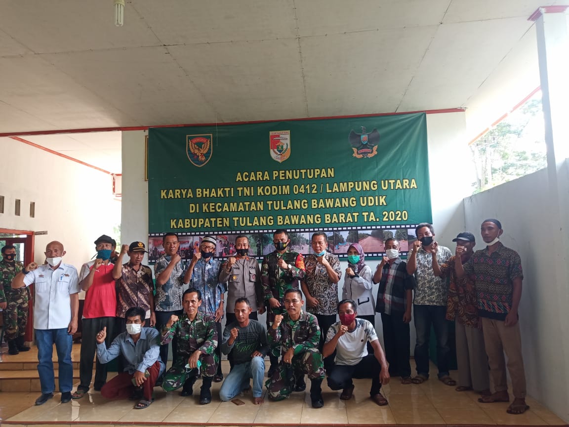 Tubaba, (Radar news.id)- Kegiatan Acara Penutupan Karya Bhakti TNI Kodim 0412/LU Tahun 2020 di Kecamatan Tulangbawang Udik (TBU), Kabupaten Tulangbawang Barat (Tubaba) Lampung, kegiatan tersebut berlangsung dengan mematuhi protokol kesehatan.