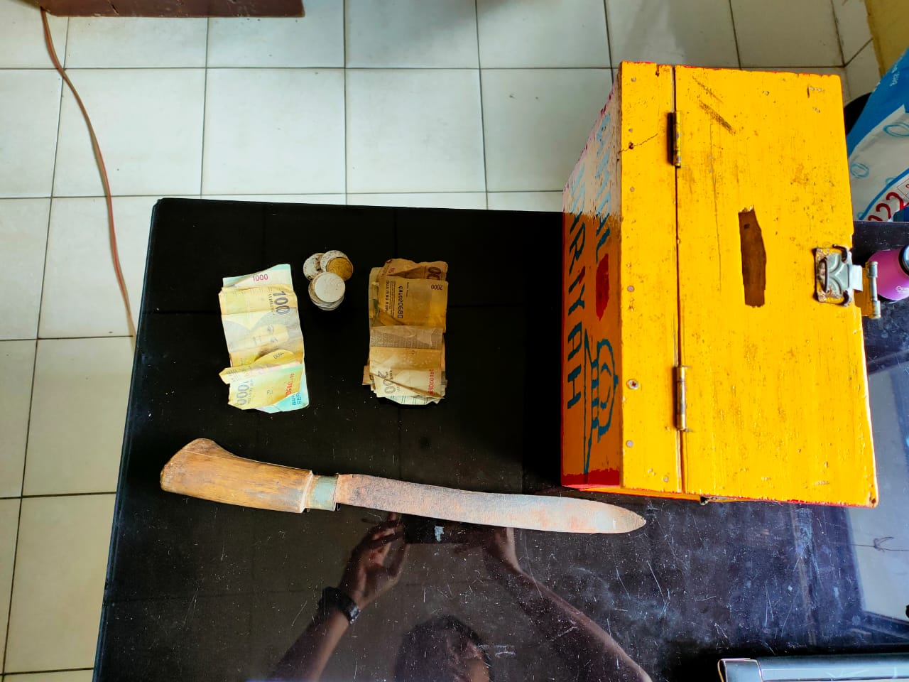 Aksi kejahatan diduga dilakukan dengan cara merusak gembok, kemudian mengambil uang tunai puluhan ribu rupiah, yang ada didalam kotak amal tersebut.