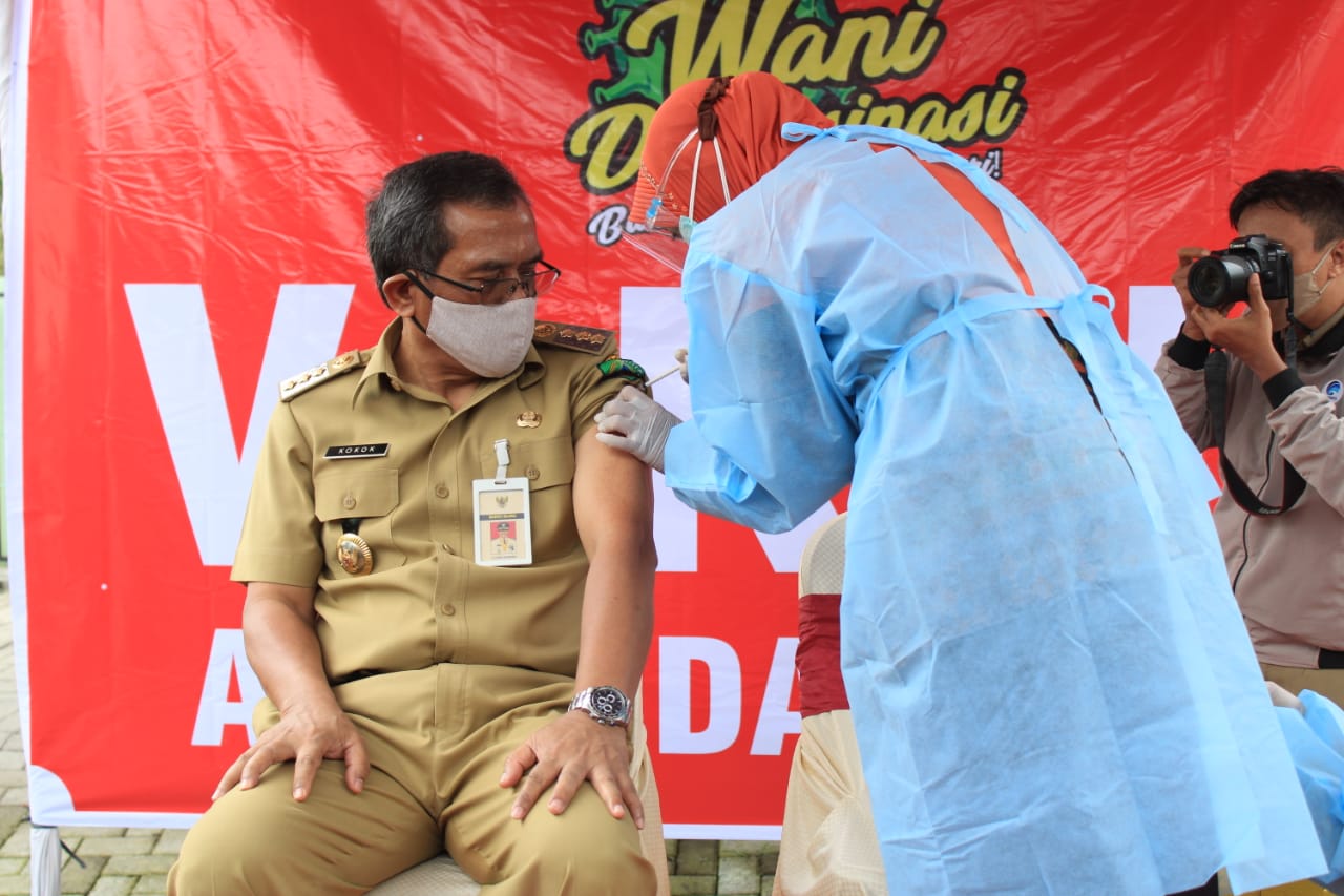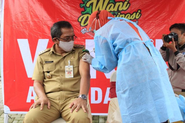 Blora, (radarnews id)– Senin, (25/01/2021) di Area Parkir Belakang RSUD dr. Soetijono Blora telah dilaksanakan Pencanangan Launching Vaksinasi Covid-19 kabupaten Blora dan Pemberian suntikan vaksin Covid-19 kepada 10 orang pertama Yaitu Forkompinda/yang mewakili dan serta tokoh masyarakat.