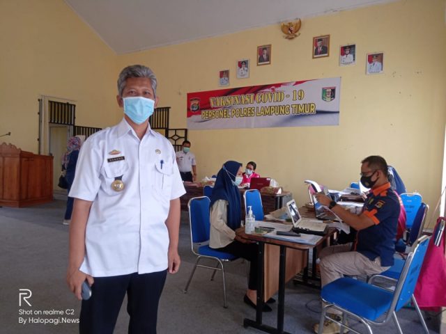 Kadis Kesehatan Dr. Nanang Saat Dikonfirmasi awak media di Aula RSUD Sukadana mengatakan Vaksinasi di hari ini ada berapa ASN Polri dari Polres Lampung Timur, yang sudah dimulai sejak hari Kamis Minggu lalu dan rencananya sampai hari Jum’at besok dengan jumlah targetnya untuk Polres di dari Polres itu sekitar 310 orang dan sampai hari ini sudah lebih dari 200 orang dari Polres Lamtim.