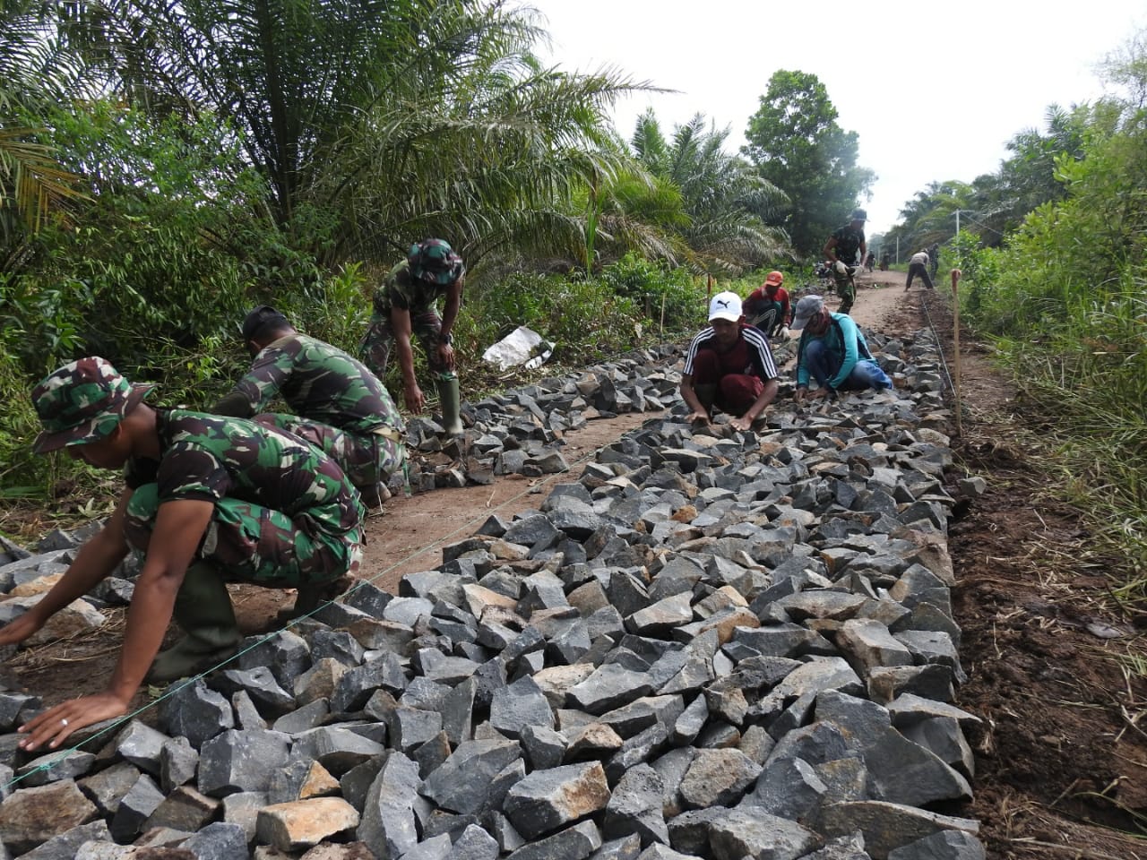 Lampung Timur, (radarnews.id)-Satuan Tugas (Satgas) TNI Manunggal Membangun Desa (TMMD) ke-110 Kodim 0429/Lamtim terus mengoptimalkan pengerjaan jalan penghubung sepanjang 4000M di Desa Sukorahayu, Kecamatan Labuhan Maringgai.