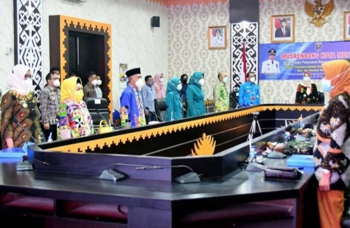 Metro Lampung (radarnews.id)-Wakil Gubernur Lampung, Chusnunia Chalim menghadiri kegiatan Musrenbang Kota Metro dalam rangka penyusunan dokumen RKPD tahun 2022.Acara berlangsung di OR Setda Kota Metro, Jumat (12/03/2021).