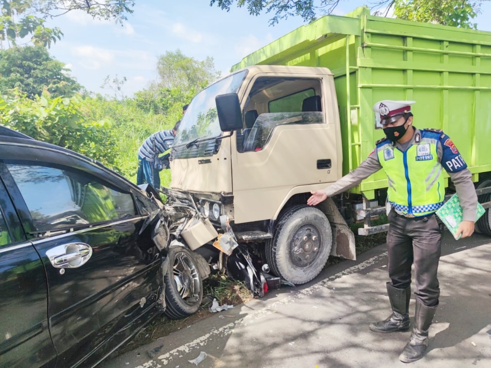 Pesawaran- (Radar News.Id) : Telah Terjadi Kecelakaan beruntun terjadi di Jalan Raya Tegineneng, Dusun Pancur, Desa Rejo Agung, Tegineneng, Pesawaran , Ada pun kecelakaan ini turut melibatkan enam unit kendaraan yakni truk Colt Diesel Mitsubishi, truk tangki Hino, Toyota Fortuner, Toyota Avanza, dan dua sepeda motor dinas. Senin (12/4/2021) pagi sekitar pukul 10.00 WIB.