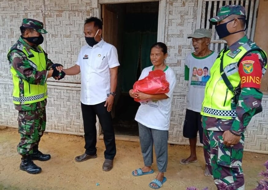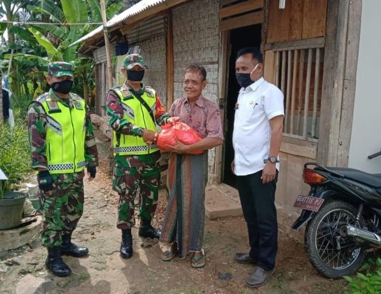Seeprti yang dilaksanakan oleh Babinsa Koramil 429-11/Sekampung, Pelda Tarsino dan Serda Ribut Wibowo membantu warga kurang mampu dengan memberikan sembako warga Desa Sukoharjo, Kecamatan Sekampung.