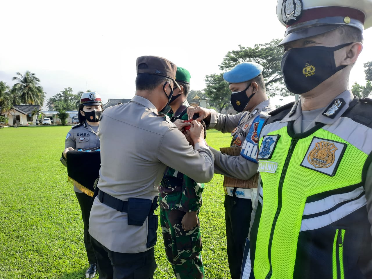 Personil Kodim 0429/Lamtim Hadiri Apel gelar pasukan OPS Keselamatan Krakatau Tahun 2021 Polres Lamtim