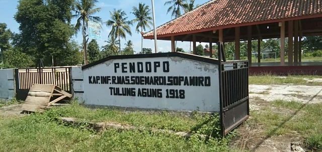 Pringsewue,(Radanews.id)-Pendopo Kap. Inf. R.Mas.Soemardi.Sopawiro Tulung Agung 1918 yang berada tepat di jalan pertigaan Pekon Tulung Agung Kecamatan Gading Rejo Kabupaten Pringsewu terkesan tidak terawat.