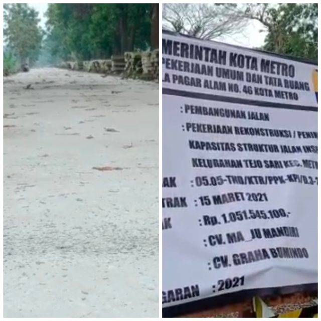 Metro Lampung.(radarnews.id)-Sangat di sayangkan Proyek Peningkatan Jalan Rigid Cor Beton dari dinas Pekerjaan Umum dan Tata Ruang (PUTR) Kota Metro TA 2021,Lokasi yang menghubungkan Kota Metro dengan desa Banjarejo 38, Kecamatan Batanghari Kabupaten Lampung Timur di bibir irigasi 24 Tejo Agung sepanjang kurang lebih 300 meter diduga bangunan tersebut tidak sesuai dengan Rencana Anggara Belanja(RAB) sehingga tidak berkualitas dan tidak transparan, Kamis (29 April 2021).
