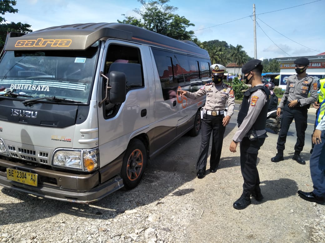 melakukan pemeriksaan terhadap puluhan kendaraan dan hasilnya sebagian besar penumpangnya merupakan warga lokal dan sebagian lainya warga luar daerah namun sudah melengkapi diri dengan surat keterangan bebas Covid-19 dari instansi terkait.