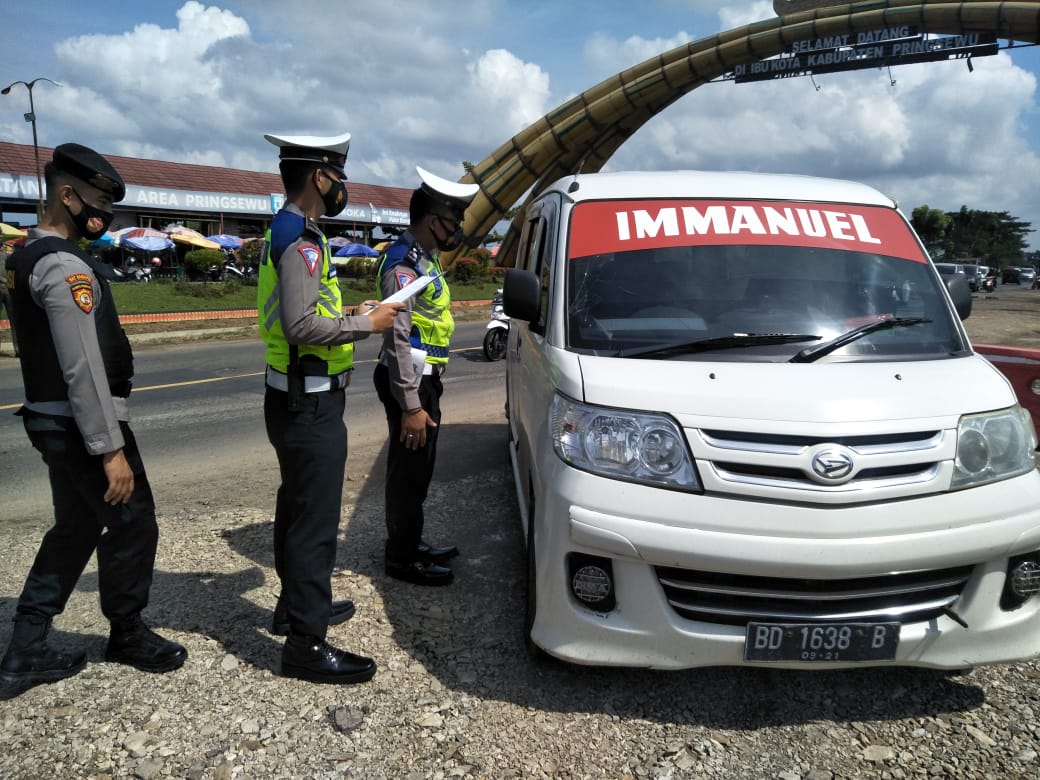 Pringsewu,(radarnews.id)-Mengantisipasi adanya pemudik luar daerah yang mencoba masuk wilayah Pringsewu Kepolisian Resor (Polres) Pringsewu bersama instansi terkait melaksanakan pemeriksaan (Sreening) arus lalu lintas.