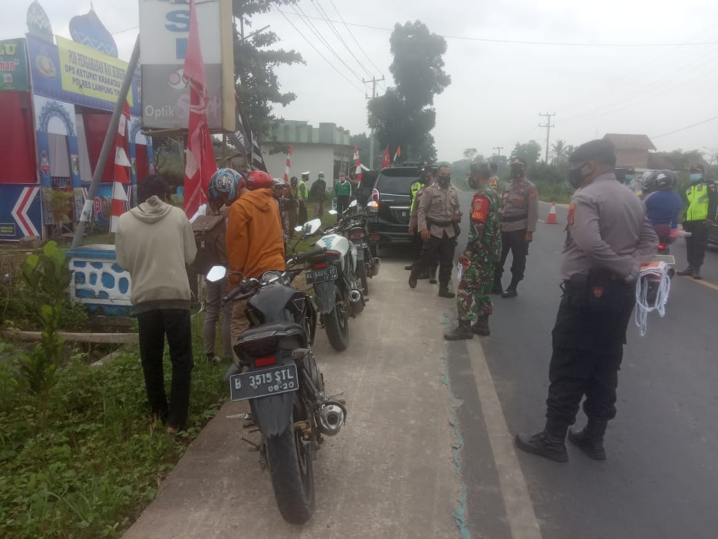 Lampung Timur,(radarnews.id)- Aparat gabungan TNI Jajaran Kodim 0429/Lamt bersama Kepolisian, Satpol PP, Dishub dan instansi terkait sampai dengan H+9 terus bersiaga di sejumlah pos pengamanan dan pelayanan yang di lalui para pengendara roda dua dan roda empat, sebagai tindak lanjut aturan pemerintah terkait larangan mudik lebaran tahun 2021.