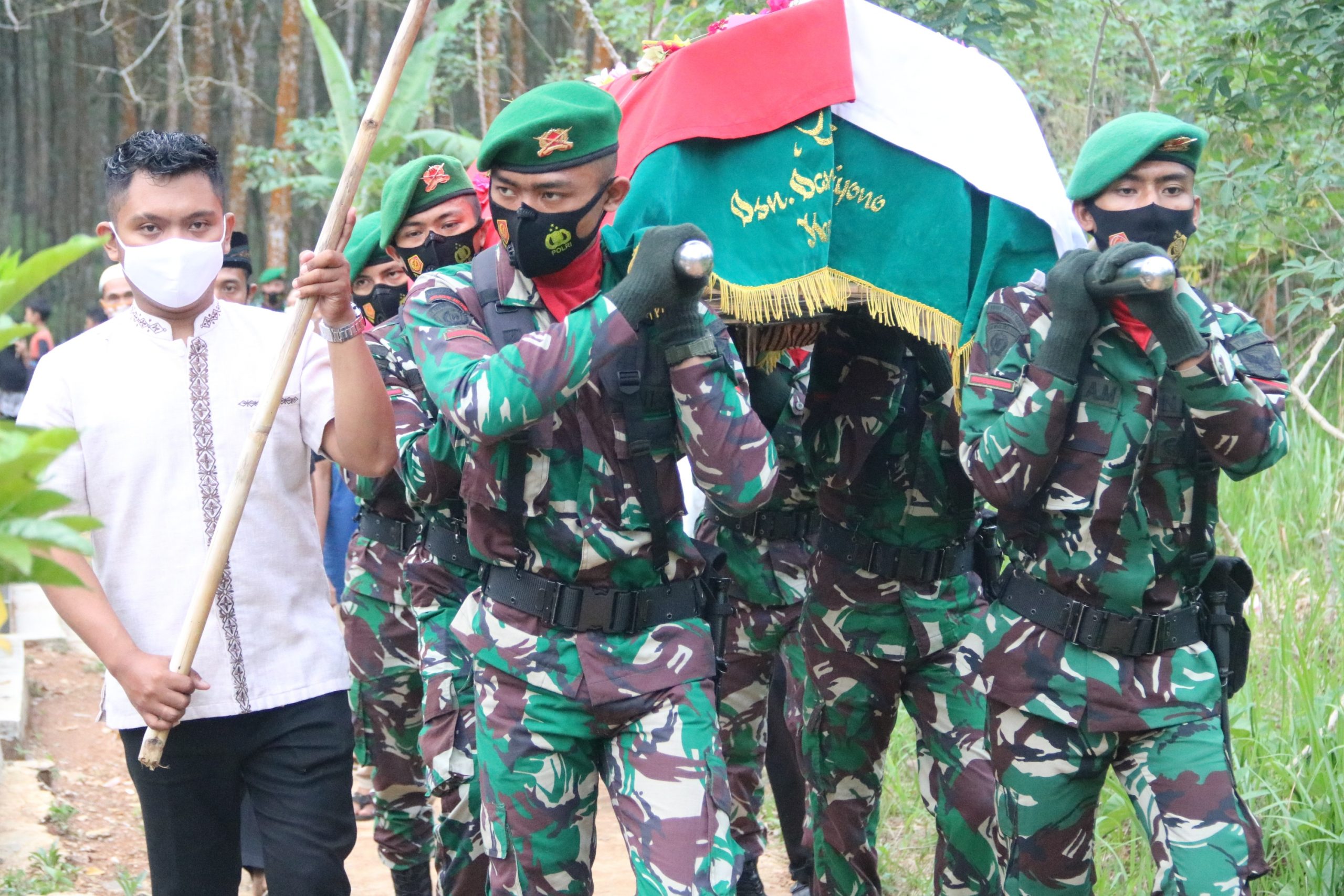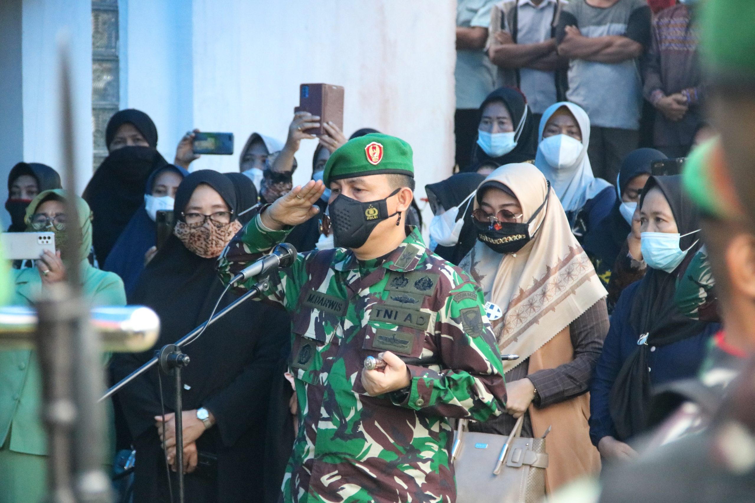 Lampung Timur,(radarnews.id)- Dandim 0429/Lamtim Letnan Kolonel Kav. Muhammad Darwis menjadi Irup dalam Upacara Persemayaman dan Pemakaman Secara Militer Jenazah Almarhum Kapten Inf. Imam Prayudi,di Dusun DAM.C Desa RW 07 RT 01 wiyono Kecamatan Gedong Tataan, Kabupaten Pesawaran, Jum’at, (11/6/2021).