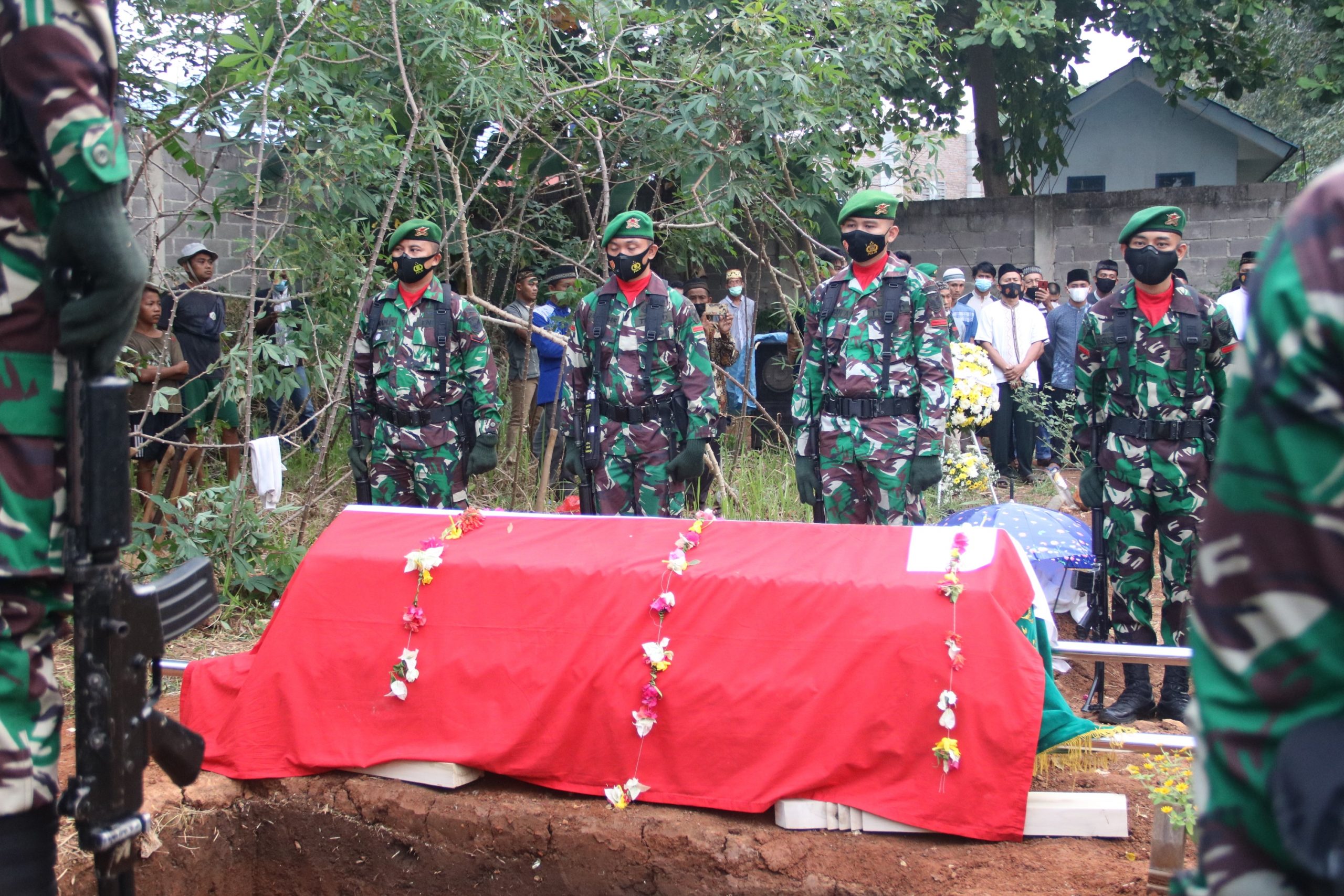 “Marilah kita memanjatkan Do’a, semoga dosa dan kesalahan almarhum semasa hidup diampuni oleh Allah SWT, dan kepada keluarga yang ditinggalkan agar dapat menerima kepergian Almarhum dengan tabah dan ihklas,” ucap Dandim.