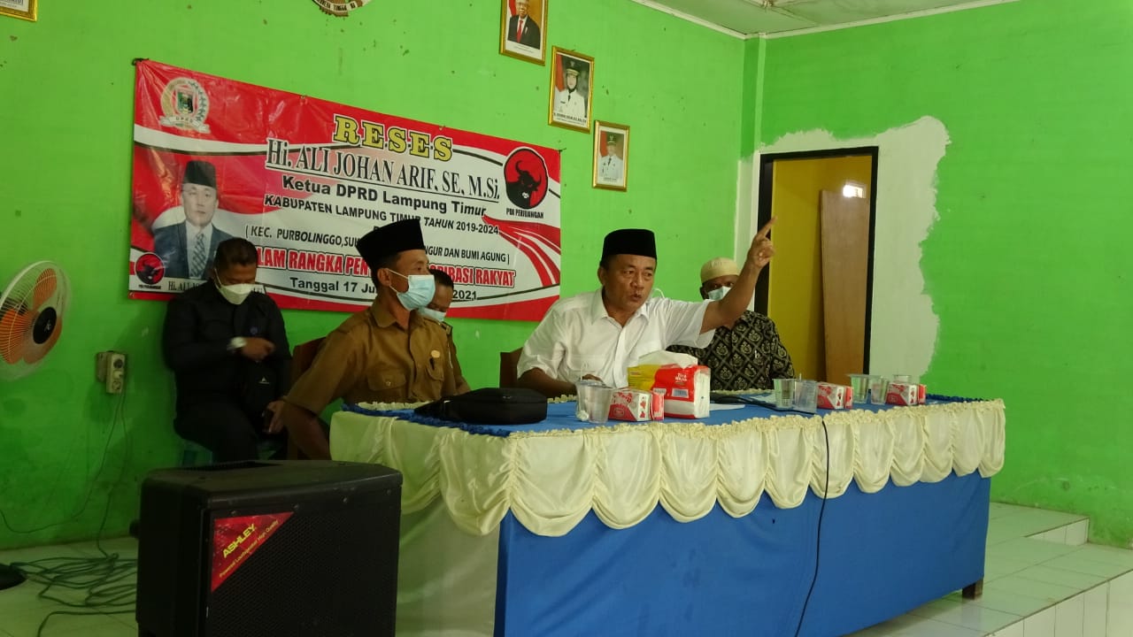 Seperti kegiatan Reses yang dilaksanakan oleh Ketua DPRD Kabupaten Lampung Timur Ali Djohan Arif di Desa Taman Bogo, Kecamatan Purbolinggo, Kabupaten Lampung Timur, Senin (21/6/202)1.