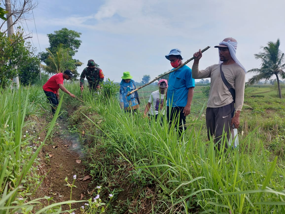 Menyikapi hal tersebut, Babinsa Koramil 429-06/Purbolinggo Kodim 0429/Lamtim Sertu Kaswanto bersama Petani adakan gropyokan tikus, di Desa Taman Cari, Kecamatan Purbolinggo, Kamis (24/6/2021).