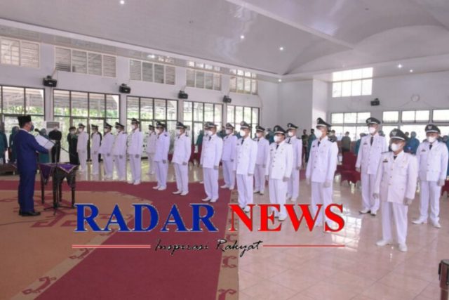 WAY KANAN, (Radarnews.id)- Raden Adipati Surya, S.H,.M.M Lantik kepala kampung terpilih dari 7 kecamatan yang ada di Waykanan diantara nya dari kecamatan Banjit,Rebang tangkas,Kasui,Gunung labuhan ,Way tuba ,Bumi agung ,Bahuga dan Buay Bahuga,di GSG Pemkab Way kanan, Jum’at (25/06/2021).