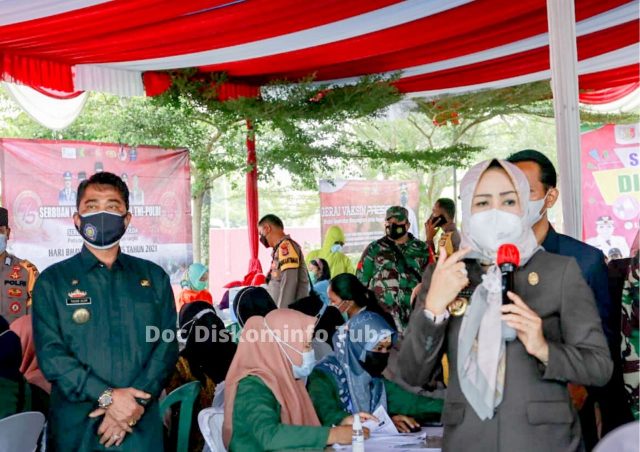 TUBA,(Radarnews.id) -Bupati Tulang Bawang Dr. Hj. Winarti, SE., MH.didampingi kadis kesehatan, inspektur, kasat Pol PP dan kadishub tulang bawang, bersama ketua komisi III DPRD kab, tuba dan Forkopimda, camat banjar agung serta kepala puskesmas banjar agung Meninjau Vaksinasi di Puskesmas Banjar Agung Kabupaten Tulang Bawang,Selasa (29/06/2021)