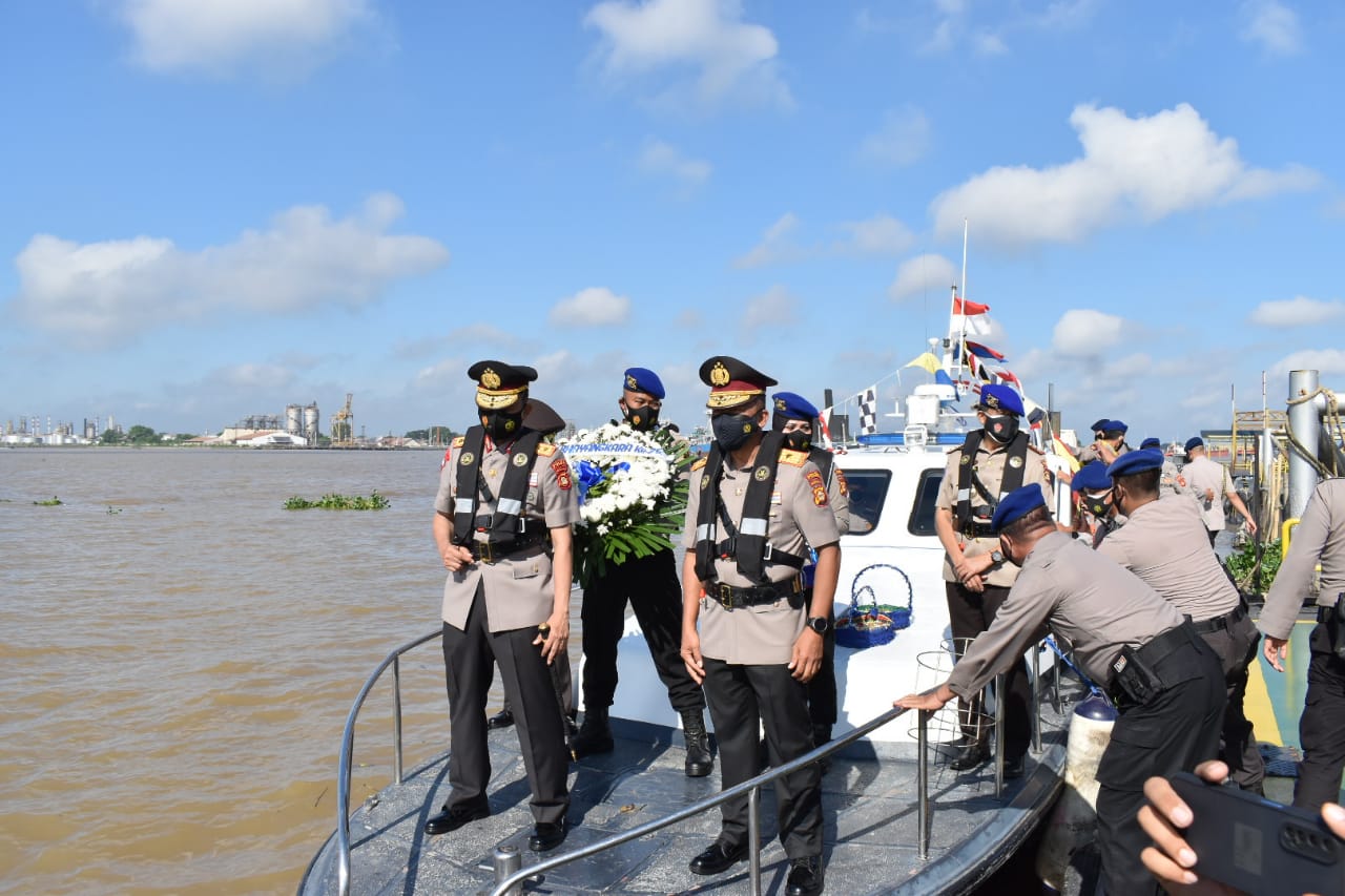 Turut hadir dalam ziarah tersebut, Wakapolda Sumsel Brigjen Pol Rudi Setiawan dan beberapa Pejabat Utama Polda Sumsel Dengan peserta perwakilan perwira, bintara, dan PNS Polda Sumsel acara dilanjutkan Tabur Bunga diperairan Sungai Musi Palembang