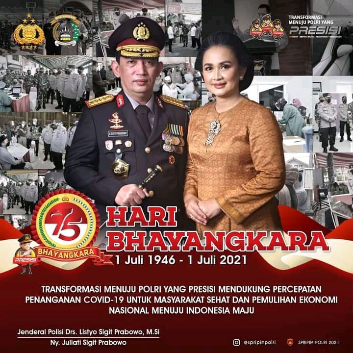 Penghargaan itu di katakan Kapolri pada acara syukuran HUT Bhayangkara ke-75 secara virtual, di Graha setempat Kamis (01/07/2021).