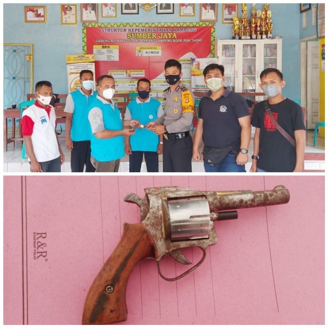 Senpi tersebut diserahkan secara langsung oleh Kepala Kampung (Kakam) Sumber Jaya, Ali Musa (46), hari Jumat (16/07/2021), pukul 10.10 WIB, di Balai Kampung.