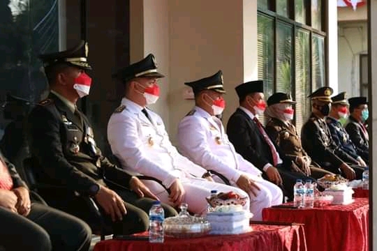 Pemkab Lampung Selatan menggelar upacara bendera peringatan Hari Kemerdekaan RI ke-76 bertempat di halaman kantor bupati setempat, Senin pagi (17/8/2021).