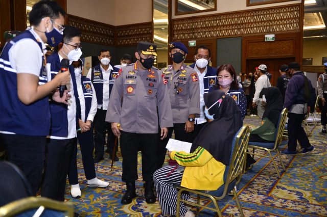 Selain melepas bus vaksinasi keliling, Sigit juga meninjau kegiatan vaksinasi massal yang diselenggarakan oleh KADIN bersama TNI-Polri di Gedung JCC, Jakarta Pusat.
