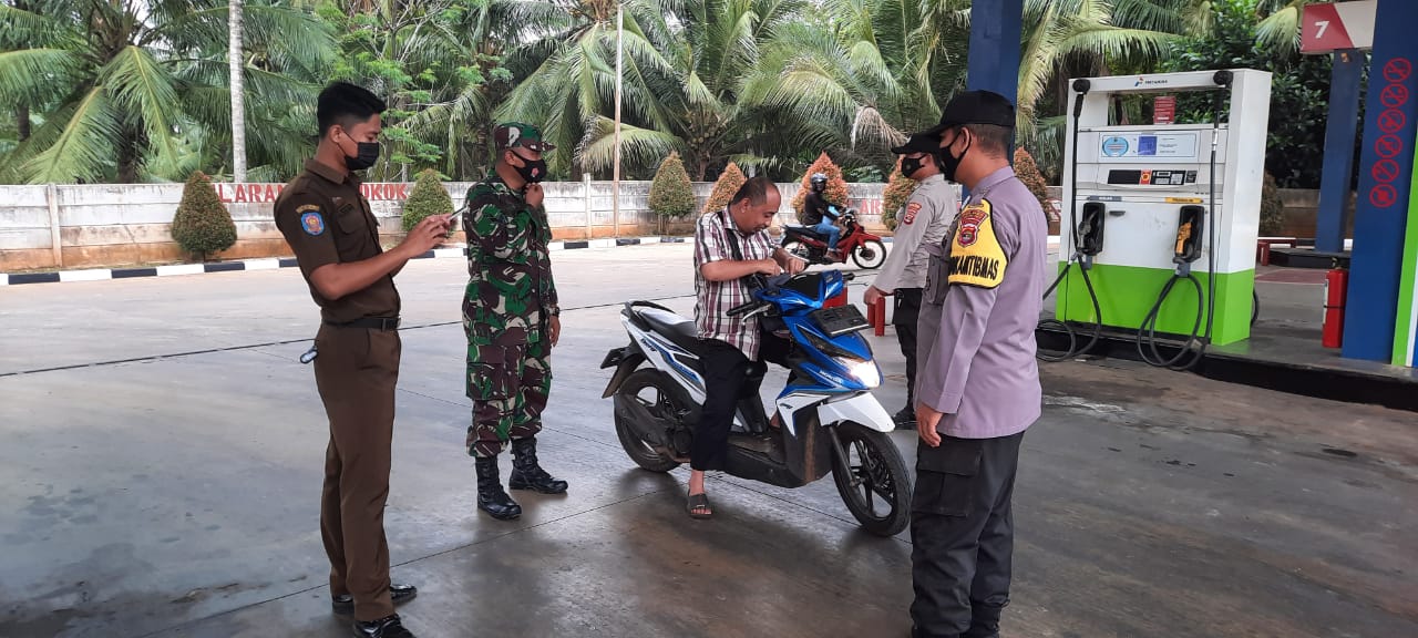 Lampung Timur, (radarnews.id)-Guna mencegah penyebaran Covid-19 Tim gugus tugas Kecamatan Batanghari Nuban kembali menggelar operasi yustisi pendisiplinan protokol kesehatan di Pom Bensin, Desa Gunung Tiga, Kecamatan Batanghari Nuban, Lampung Timur, Senin (6/9/2021).