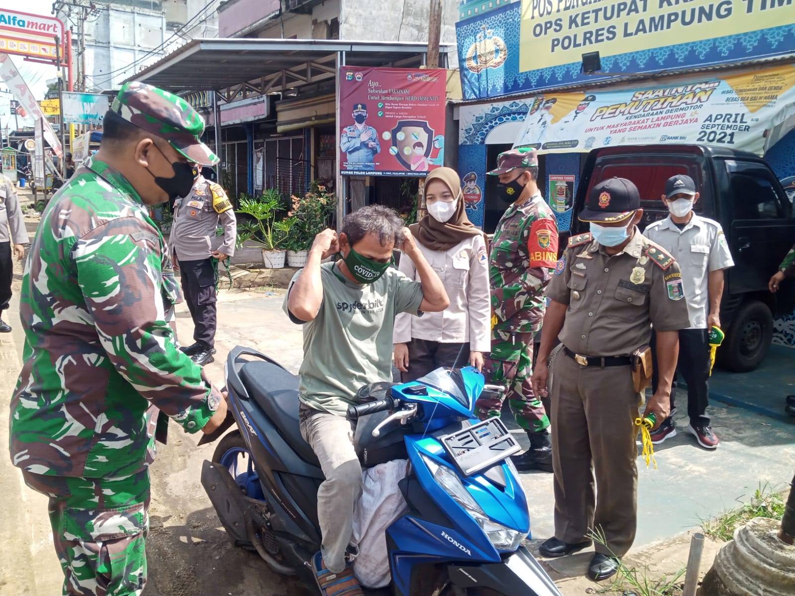 Setidaknya ada 20 Personil gabungan TNI-Polri, Satpol-PP dan BPBD melaksanakan kegiatan yustisi yang berlokasi di pasar simpang Srimenanti, Kecamatan Bandar Sribhawono, Lampung Timur, Jum’at (24/9).