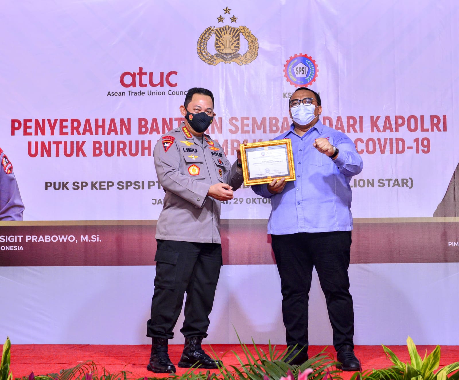 Sementara itu, Presiden KSPSI Andi Gani Nena Wea mengucapkan terima kasih atas perhatian Kapolri yang sudah memberikan bantuan terhadap buruh, baik pembagian sembako maupun vaksinasi.