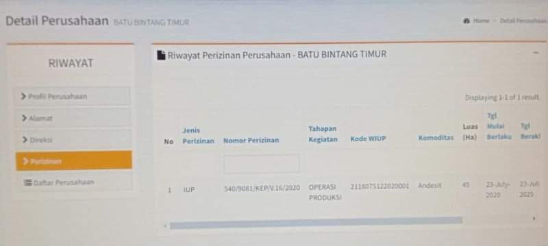 Sebab selama ini Perusahaan Pertambangannya tersebut telah melakukan aktivitasnya sebagai Penambang batu, menurut website, PT Batu Bintang Timur, memiliki lahan seluas 45 hektar, apakah benar miliknya atau milik orang lain dari sewa menyewa, kalau lahan bukan miliknya tentunya setelah selesai sewa menyewa, harus dikembalikan seperti semula dengan cara menghijaukan kembali lahan tersebut, supaya pemilik lahan bisa memanfaatkan lahan, tidak seperti pertambangan pasir di Kecamatan Pasir Sakti, yang lahannya tidak bisa dimanfaatkan kembali