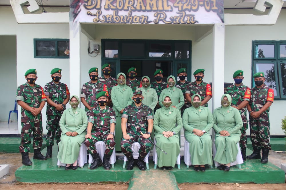 Lampung Timur, (radarnews.id)-Komandan Kodim 0429/Lamtim Letkol Czi. Indra Puji Triwanto, S.H didampingi Ketua Persit KCK Cab LIV Dim 0429 Ny. Indra Puji kunjungi Koramil 429-01/Labuhan Ratu, Selasa (25/01/2022).