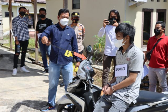 Rekonstruksi dilakukan. Selasa (25/01/2022) sekira pukul 10.00 Wib bertempat di Halaman Mapolres Oku. Rekonstruksi tersebut diperagakan langsung oleh Pelaku OTORI EFFENDI Alias SUEB (25).