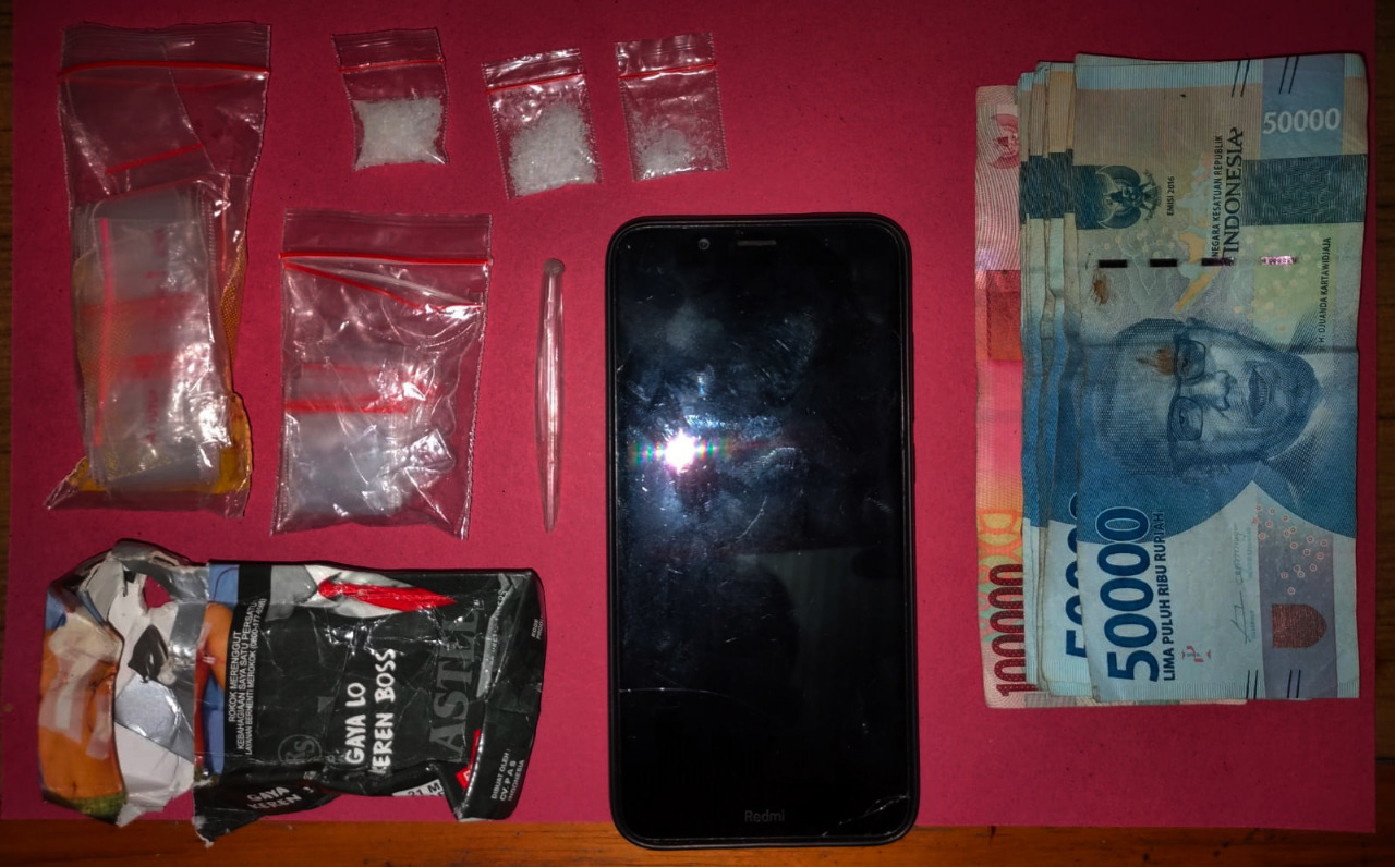 Dari tangan bandar narkotika ini, lanjut AKP Anton, petugasnya berhasil menyita barang bukti (BB) berupa tiga bungkus plastik klip berisi narkotika jenis sabu dengan berat bruto 1,59 gram, pipet yang ujungnya runcing (sendok sabu), dua bungkus plastik klip yang berisi beberapa plastik klip kosong, kotak rokok kosong, handphone (HP) merk Redmi, topi berwarna hijau, dan uang tunai sebanyak Rp 500 ribu.