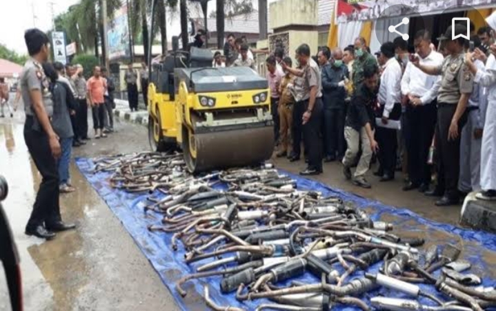Namun karena sudah sangat gencarnya sosialisasi yang kami upayakan maka tindakan kepada mereka yang kasat mata memakai knalpot brong pasti kami lakukan,sampai hari ini lebih kurang sudah 200 kendaraan yang memakai knalpot brong kami Tilang.