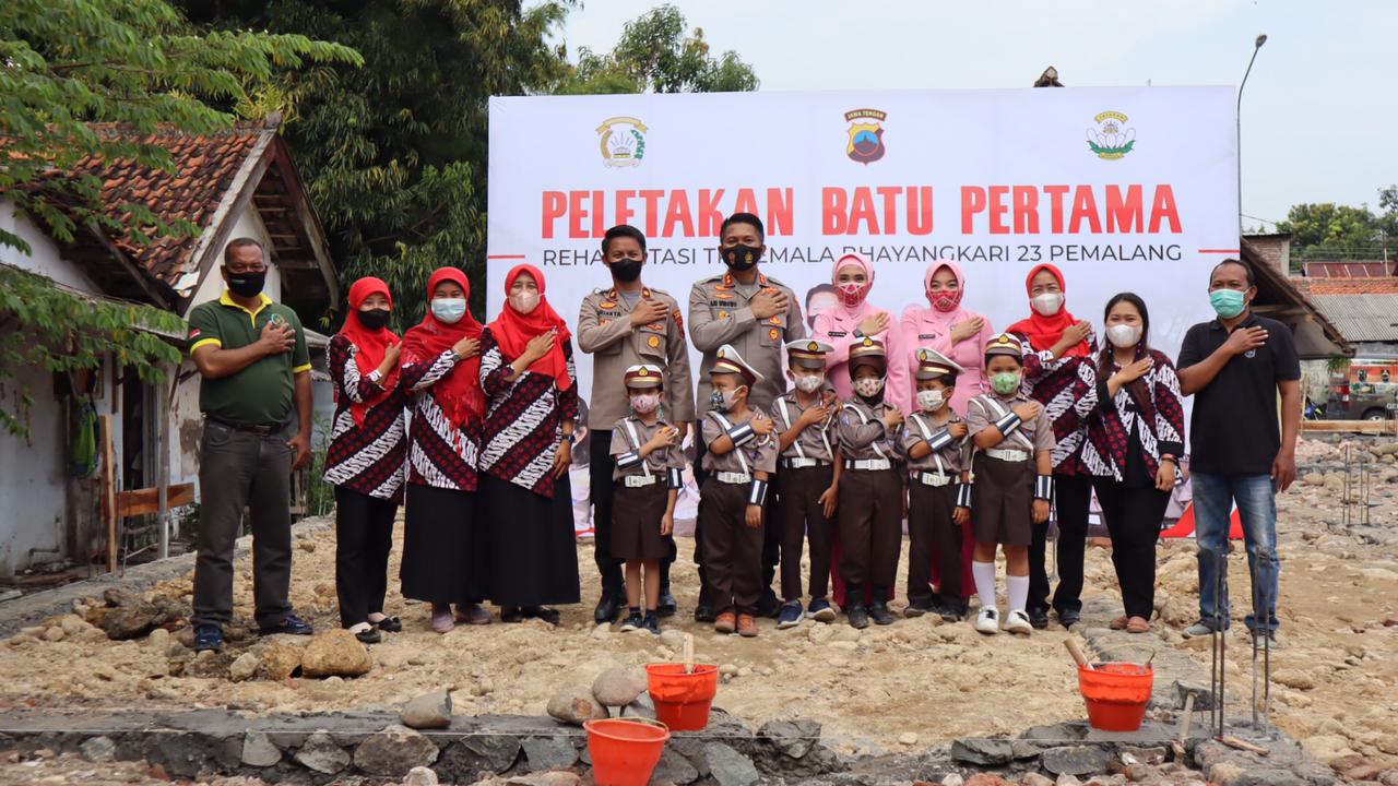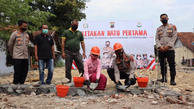 Pemalang, (radar news.id) – Ditandai dengan prosesi peletakan batu pertama oleh Kapolres Pemalang AKBP Ari Wibowo bersama Ibu Ketua Bhayangkari Cabang Pemalang Ny. Anti Ari Wibowo, Kamis (25/03/2022), rehabilitasi TK Kemala Bhayangkari 23 Pemalang mulai dikerjakan dengan dukungan penuh dari Pemerintah Kabupaten Pemalang melalui Dinas Pendidikan dan Kebudayaan.
