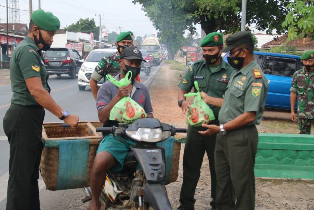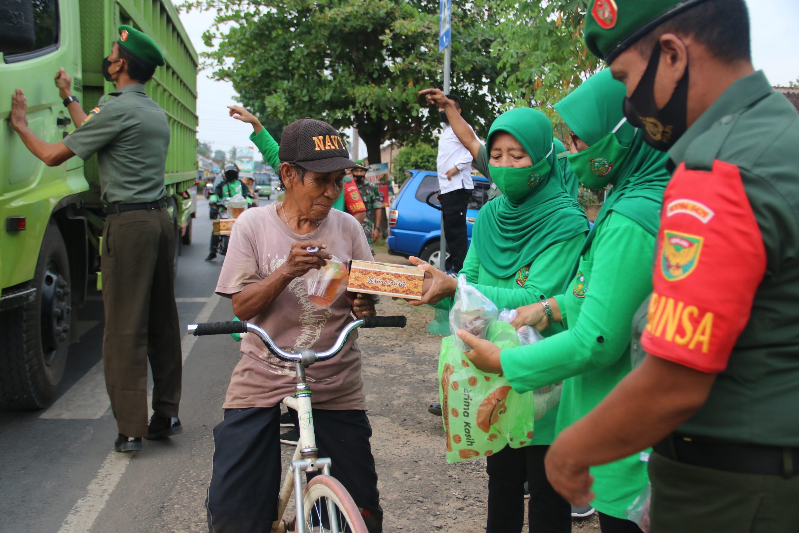 Kegiatan pembagian takjil dan sembako dipimpin langsung Danramil 429-07/Pekalongan Kapten Inf. Jumingan beserta Anggota dan Persit.