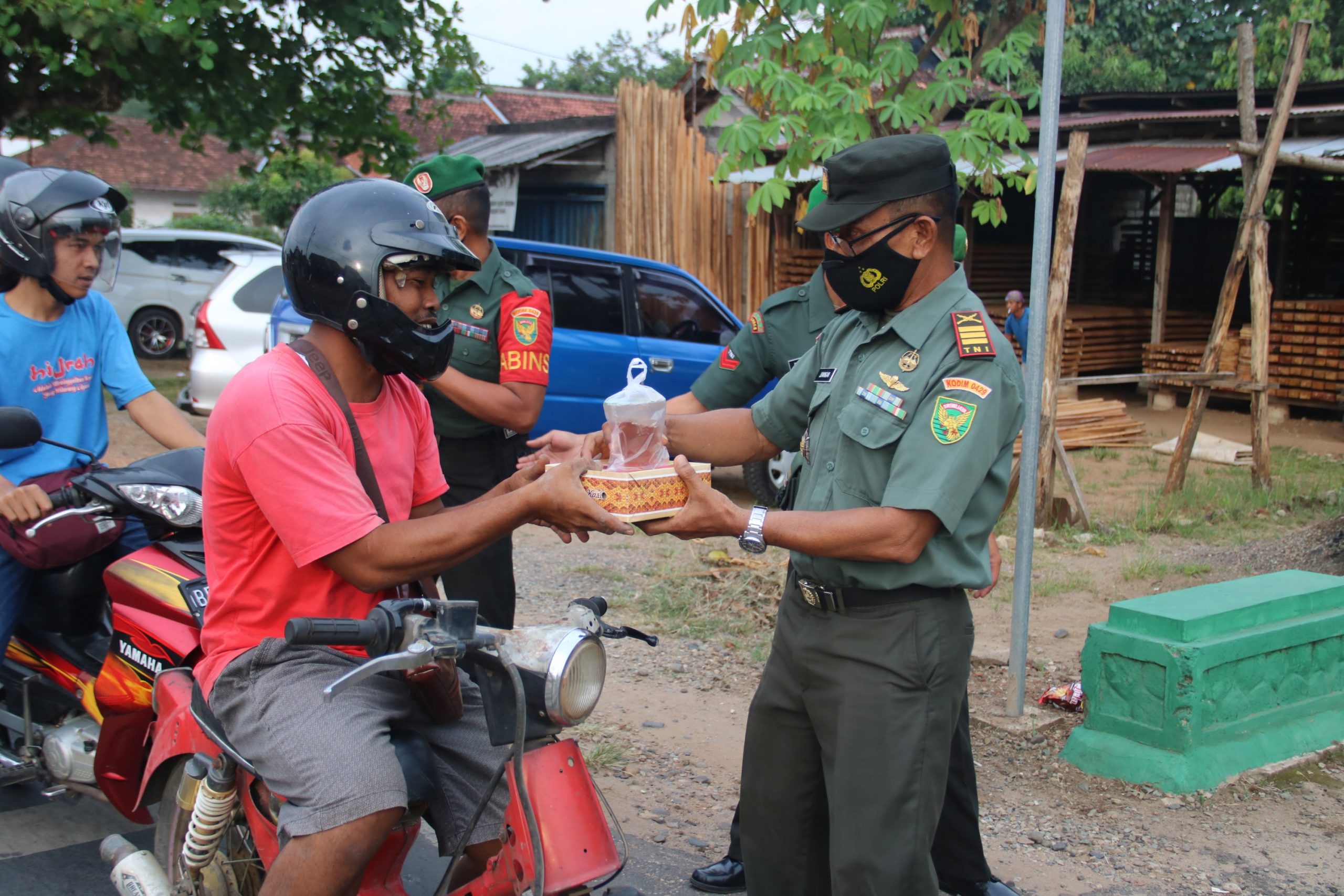 Lampung Timur,(radarnews.id)-Kodim 0429/Lamtim melalui Koramil 429-07/Pekalongan menjemput berkah dan berbagi takjil bagi masyarakat yang melintas di jalan utama depan Koramil, Kamis sore (21/4/2022).