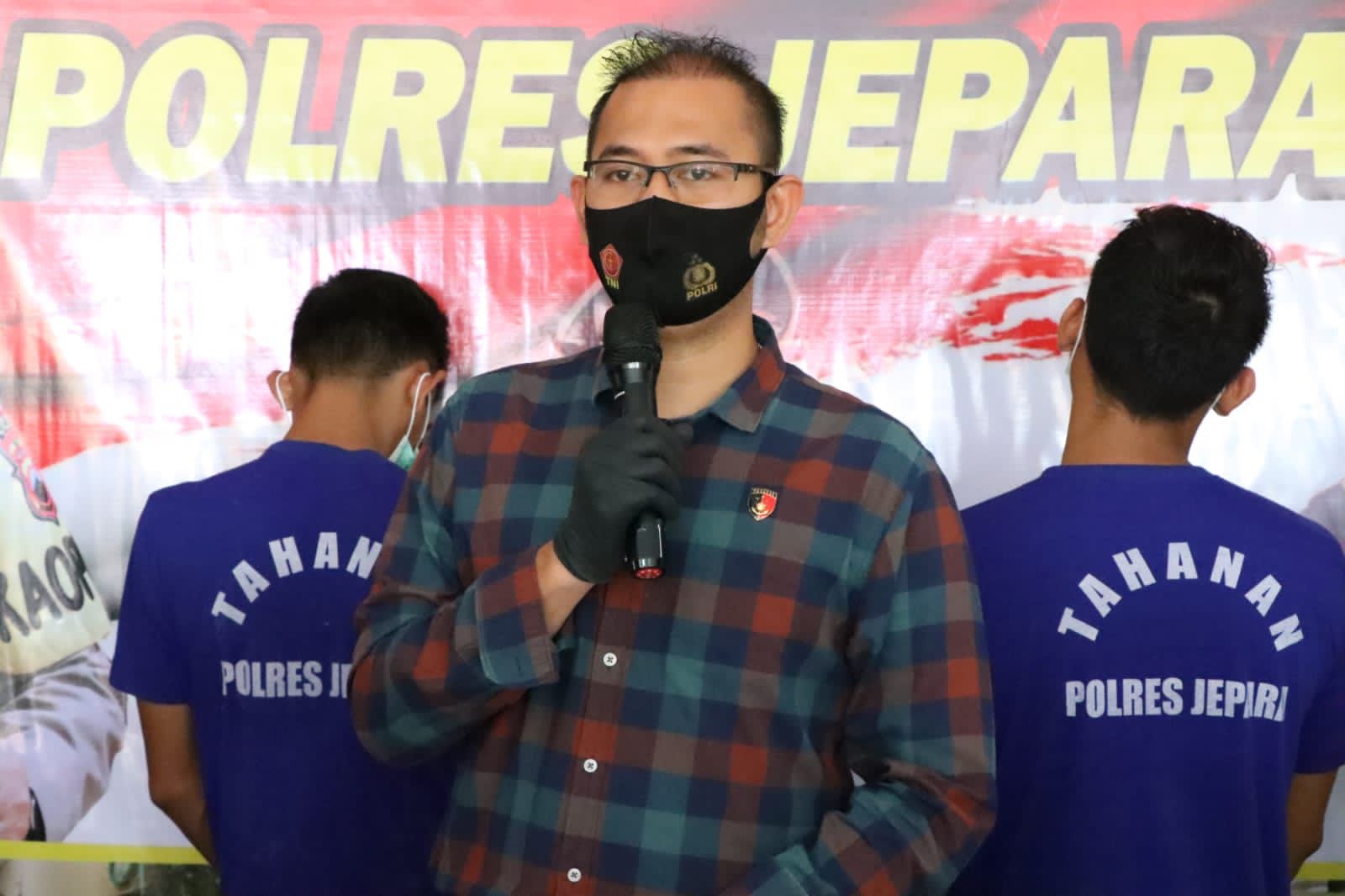 Kapolres Jepara, AKBP Warsono Menyampaikan dalam jumpa pers Kamis (26/5-2022) di Mapolres Jepara. dengan di dampingi Waka Polres Jepara Kompol Berry, Kasat Reskrim AKP M. Fatchur Rozi dan Kanit Penmas Humas Polres Jepara IPDA Badar Amry Yahya.