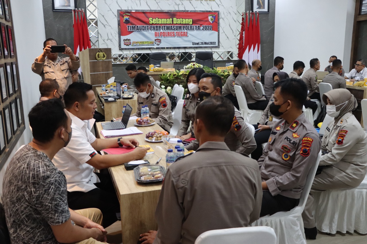 Tegal, (radarnews.id) – Audit PNBP internal dari Itwasum Polri digelar di Polres Tegal pada hari Kamis (26/05/2022) dengan sasaran pemeriksaan berasal dari 10 Satker Polres Jajaran Polda Jateng yang dipimpin oleh Brigjen Pol Drs. Suradiyana selaku Irwil I Itwasum Polri dengan pimpinan TIM.