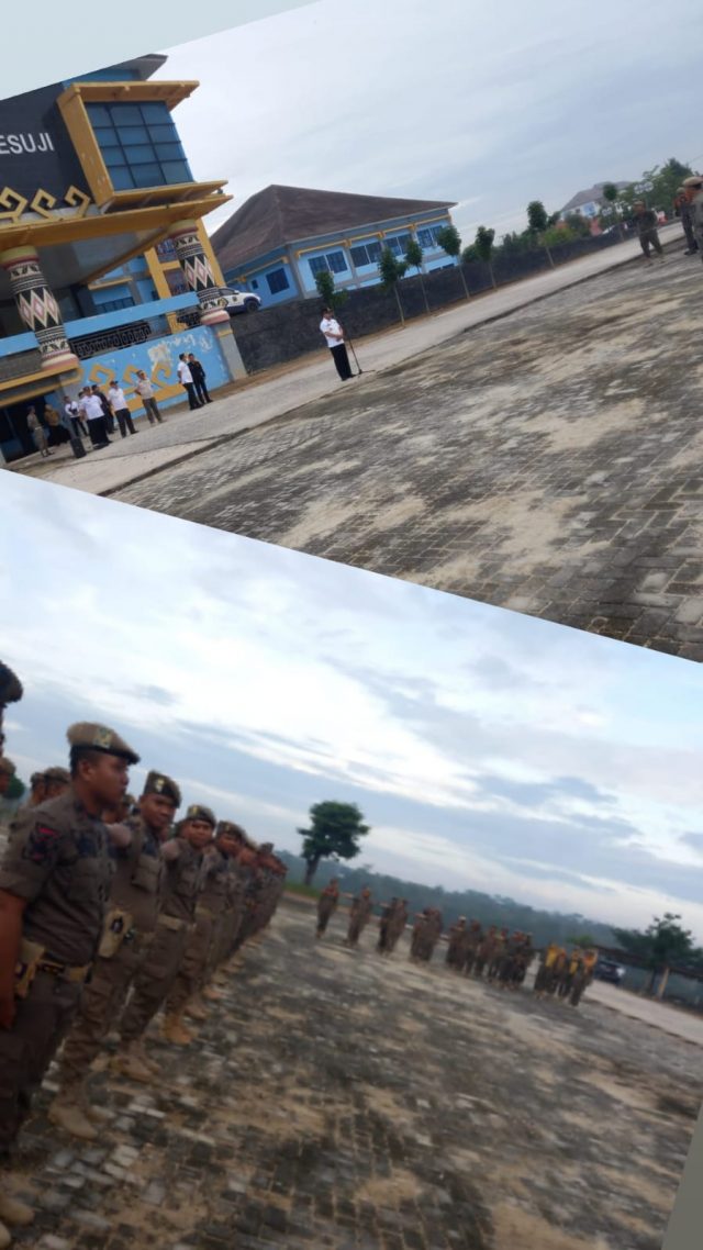 Mesuji, (radarnews.id)- Bupati Mesuji Sulpakar memimpin apel yang diikuti personel Satuan Polisi Pamong Praja di lapangan perkantoran Kabupaten Mesuji, Rabu (15/06/2022).