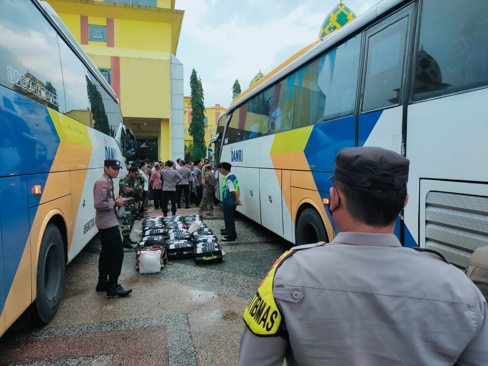 “Penempatan personil pengamanan sesui dengan titik-titik yang sudah di koordinasikan dengan pihak Polres termasuk lokasi tempat turunya barang-barang para Jemaah haji, harapanya situasi tetap aman dan kondusif sampai dengan selesai”, tegasnya.