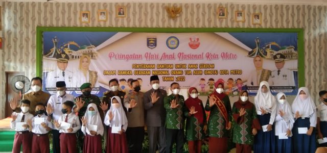 Metro Lampung (Radarnews.id) –  Pemerintah Kota Metro serahkan bantuan dari Gerakan Nasional Orang Tua asuh (GNOT) berupa uang tunai sebesar Rp 300.000,- kepada ratusan Siswa Sekolah Dasar di Asrama Haji Alkhariyah. Kegiatan tersebut dilakukan dalam rangka memperingati Hari Anak Nasional tahun 2022.