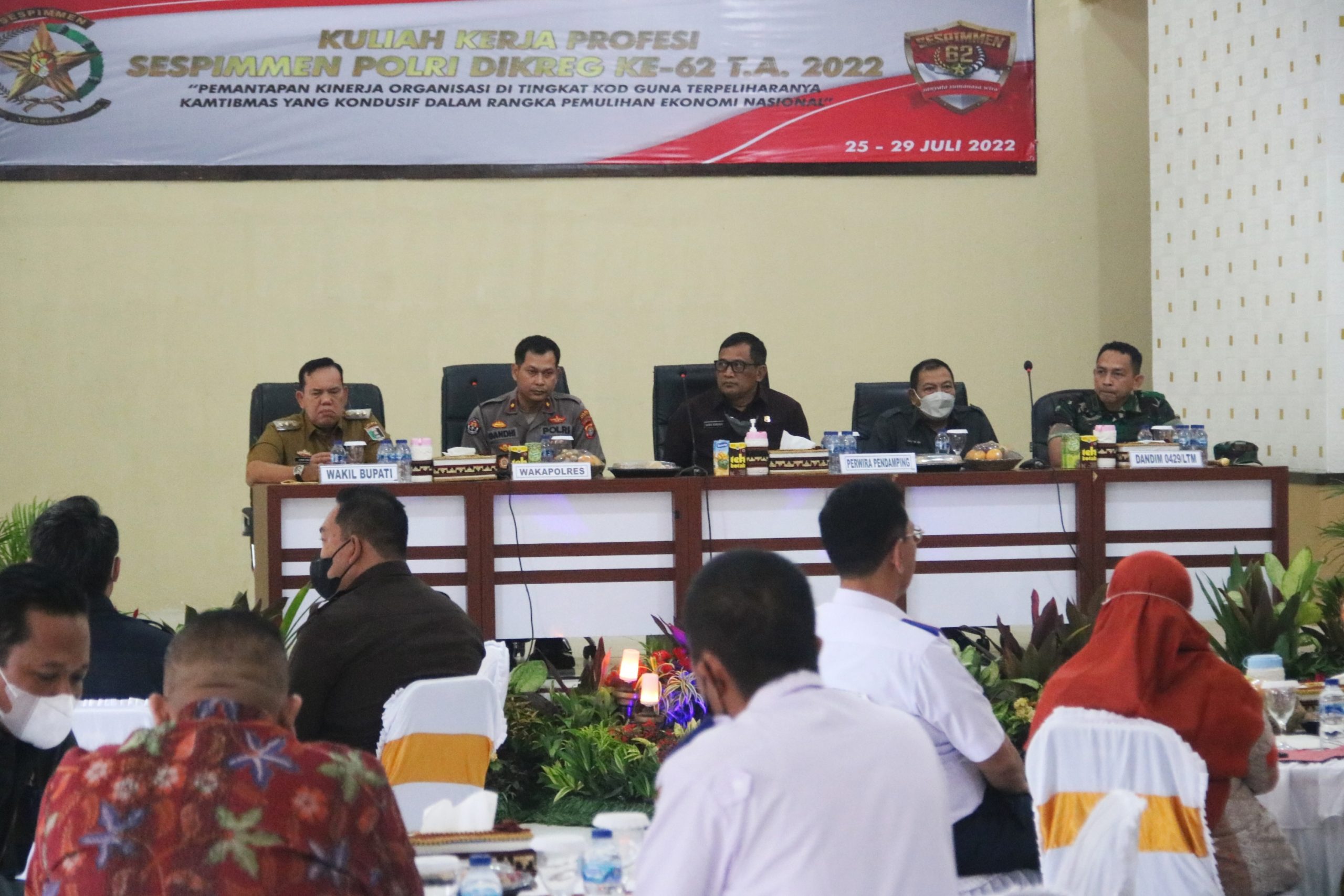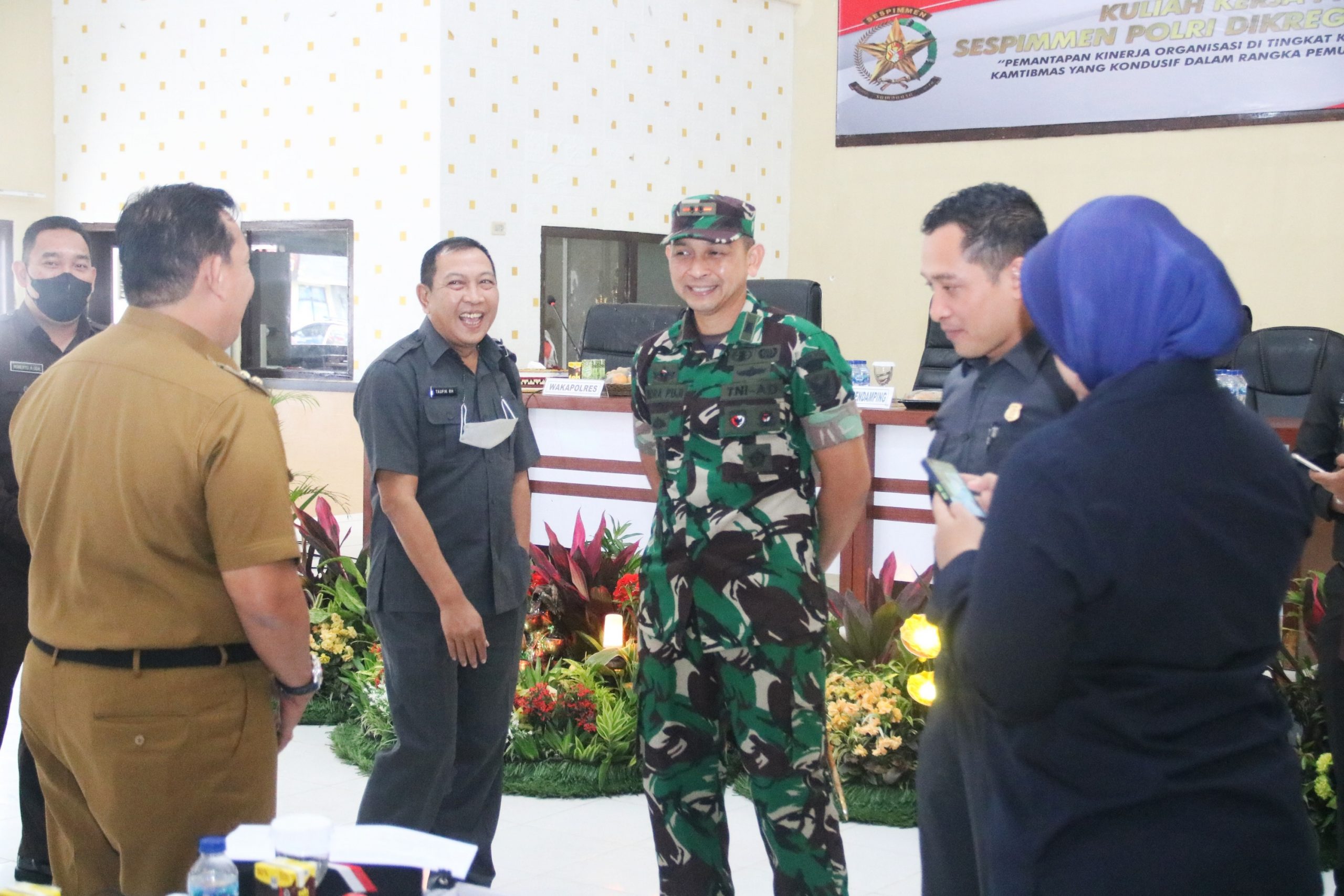 LAMPUNG TIMUR,(radarnews.id)-Komandan Kodim (Dandim) 0429/Lamtim Letkol Czi. Indra Puji Triwanto, S.H menghadiri kegiatan Kuliah Kerja Profesi (KKP) Tahap II Sespimmen Polri Dikreg ke-62 TA. 2022, bertempat di Aula Tribrata Polres Lampung Timur, Selasa (26/7).