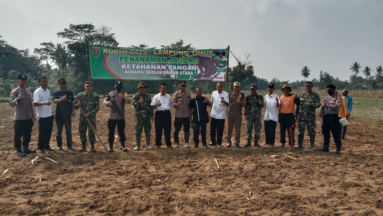 LAMPUNG TIMUR, (radarnews.id)- Lahan tidur seluas 0,5 Hektar milik Koramil 429-08/RU yang terletak di Desa Ratna Daya, Kecamatan Raman Utara ditanami jagung, Rabu (27/7/22).