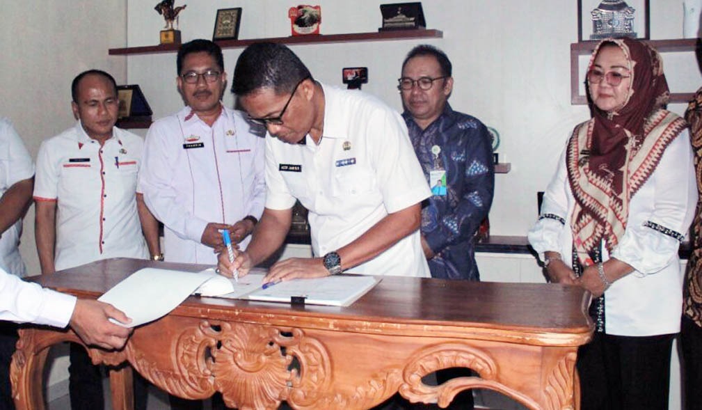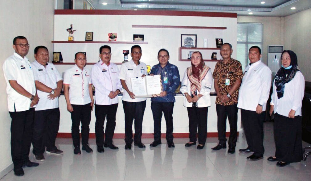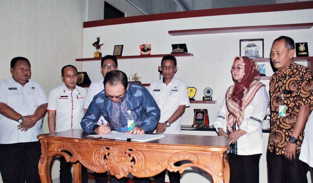 MoU anatara Dinas Pendidikan Kabupaten Lampung Selatan yang diwakili Plt Kepala Dinas Asep Jamhur dan Kepala Kantor Cabang BPJS Ketenagakerjaan Sulistijo Nisita Wirjawan berlangsung di ruang Sekreratris Daerah (Sekda) Kabupaten Lampung Selatan, Kamis (13/10/2022).