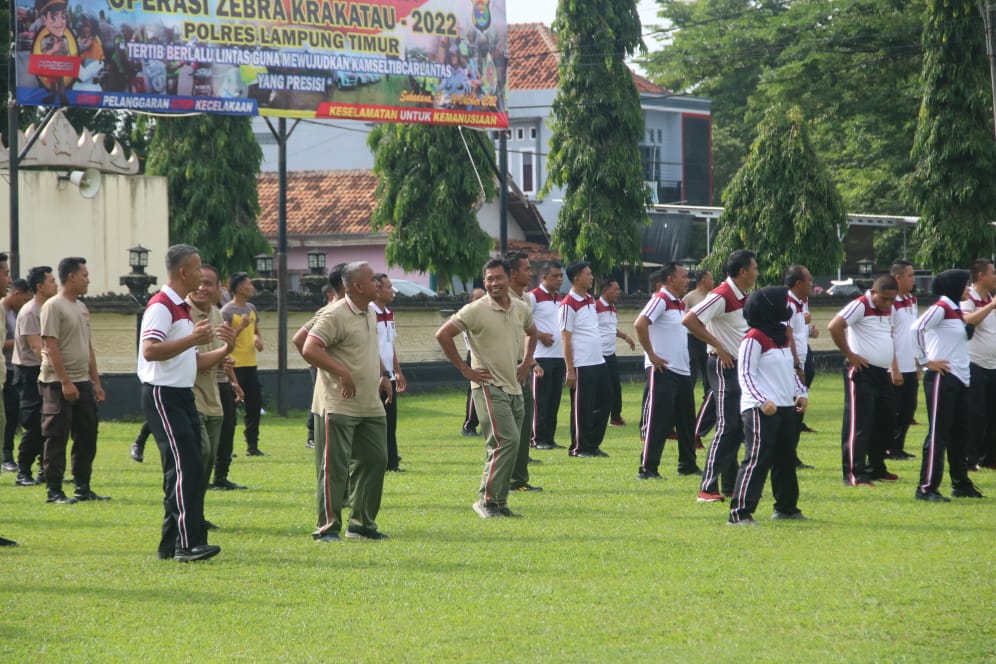 Kegiatan senam bersama yang di gelar dilapangan Mapolres diikuti oleh Kapolres beserta PJU dan Anggota Kodim 0429/Lamtim.