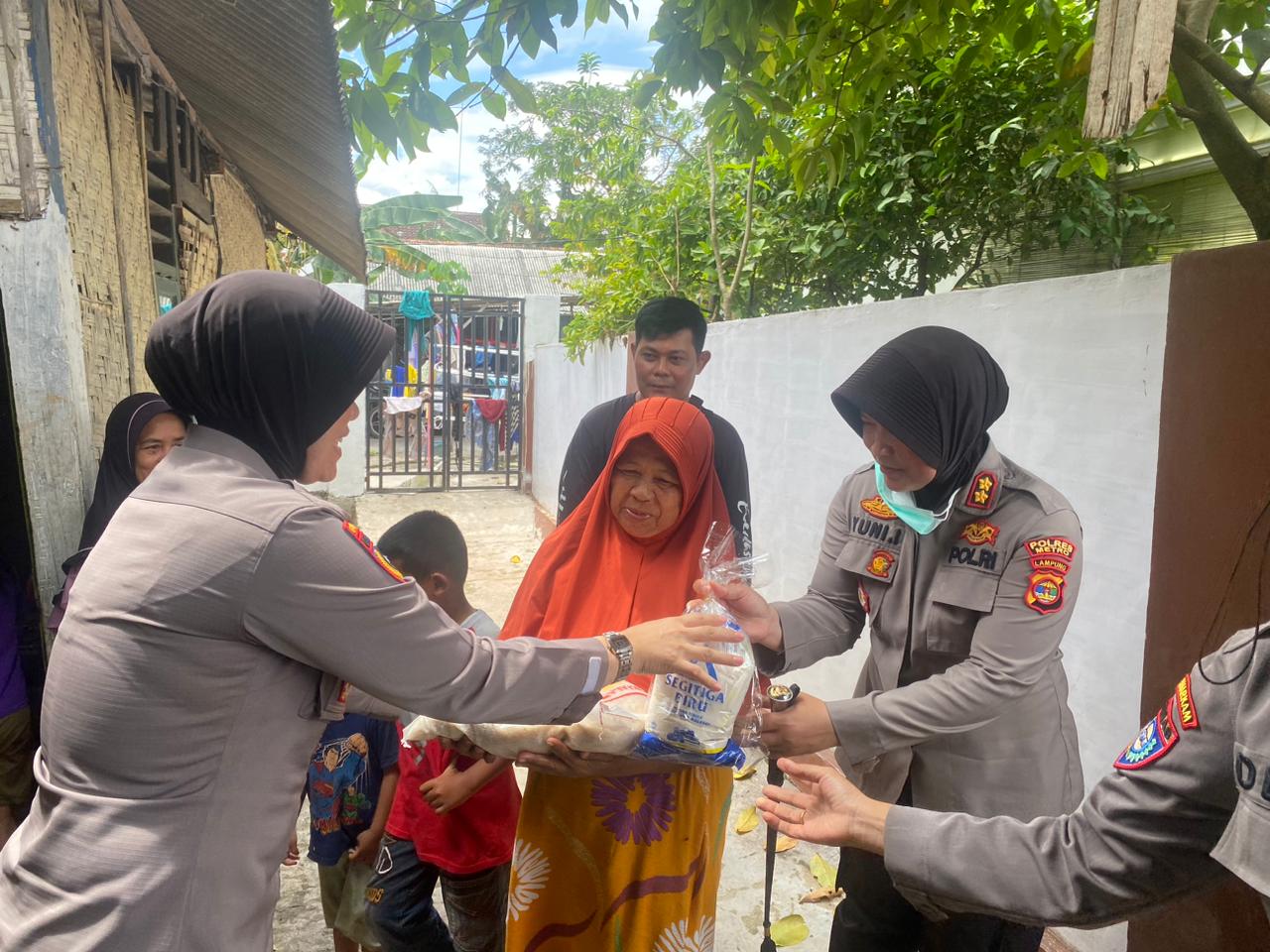 Kapolres Metro, AKBP Yuni Iswandari Yuyun S.IK., MH, turun langsung melakukan penyerahan bantuan kepada Warga lingkungan tersebut.