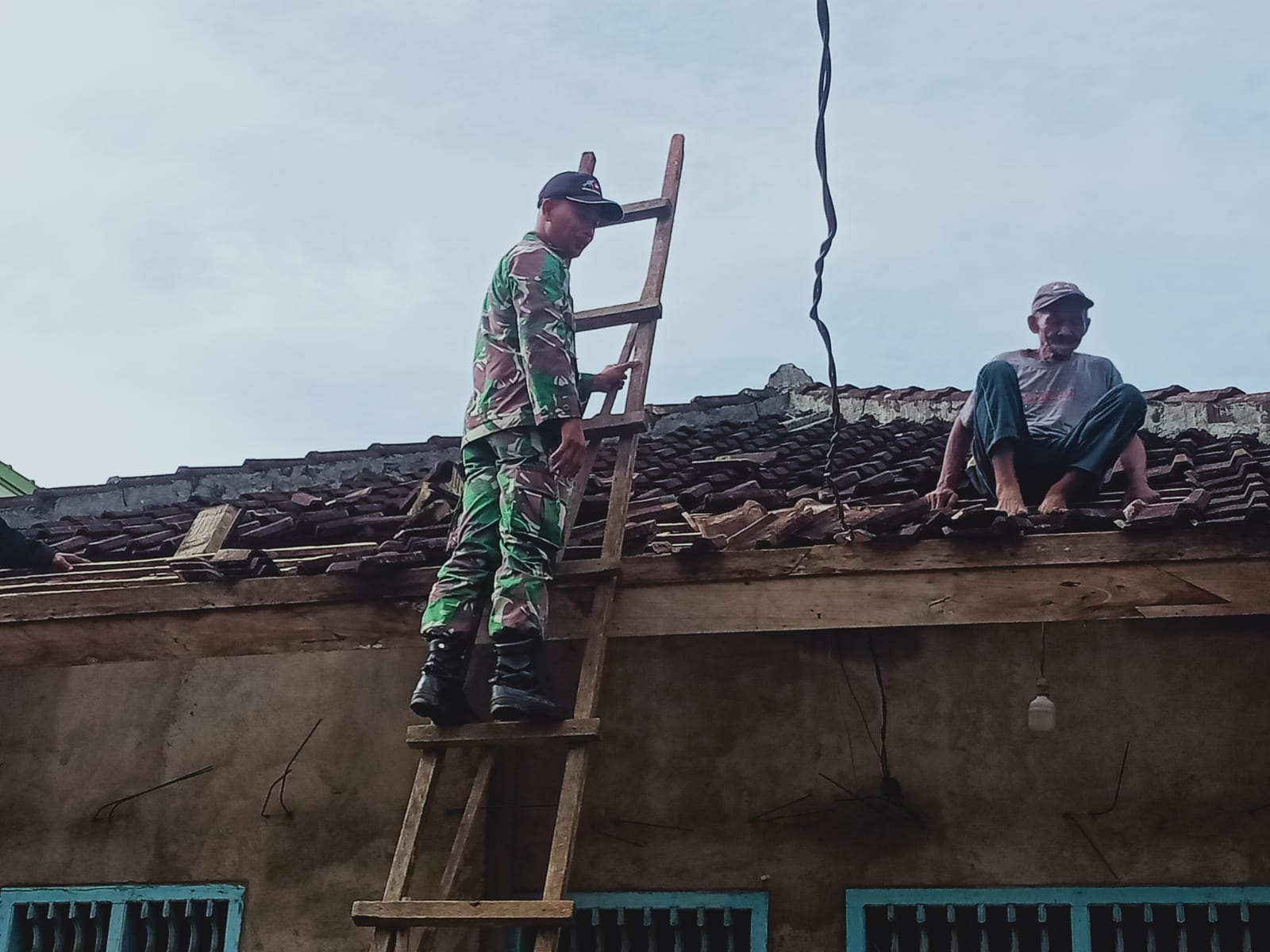 Pada Sabtu, 26 November 2022 Babinsa bersama warga masyarakat membantu meringankan beban dan salah satunya adalah membantu membetulkan atap rumah milik warga yang terdampak musibah tersebut.